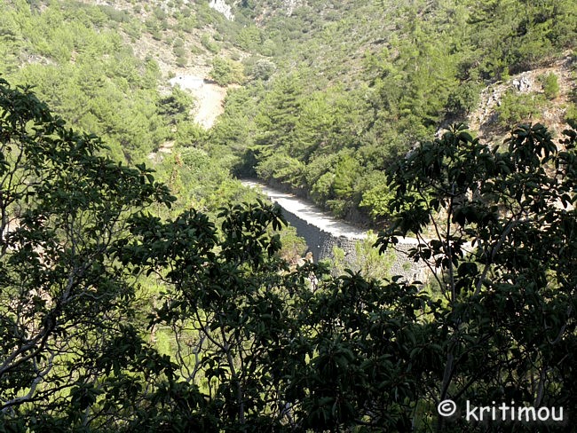 ![]() Für uns Städter, die nur zur schönen Jahreszeit hier Urlaub machen und uns mit den Widrigkeiten der Natur im Winter nicht auseinanderzusetzen brauchen, die aus dem abgesicherten Modus der Bequemlichkeit eines Urlaubes durch die Berge streifen, lassen sich kaum die tatsächlichen Mühen vorstellen, die die Dorfbewohner in den Bergen herumplagen: Gesundheitsversorgung, Einkauf von Lebensmitteln, Versorgung von Vieh und von landwirtschaftlich genutzten Flächen, die an steilen Hängen liegen. Mit viel Geduld, Gottvertrauen und Zuversicht lässt sich dies im Schoße der Familie bewerkstelligen. Nur so, denn alleine sind die Mühen zu groß. Wehe dem, dessen Kinder in die Stadt gezogen sind, dessen Eltern schon tot sind und der Ehegatte auch schon früh verstorben ist. In der Einöde der Bergdörfer zu überleben heißt im wahren Sinne des Wortes seine Existenz zu sichern, wenn man mit einem altersschwachen, rostigen Klappergestell für seine Besorgungen ins nächste Dorf oder in die Stadt juckeln muss. Doch in unserer Erinnerung bleibt ein liebliches, hellgrünes Tal mit unzähligen Péfka und Kräutern. Obwohl wir mit dem Auto unterwegs waren, sind auch wir alle paar Meter stehengeblieben, dann wieder ein paar Kurven weitergefahren, um erneut anzuhalten und aussteigen, um uns ein ums andere Mal von der Schönheit der kretischen Natur an dieser Stelle zu sättigen. Das Herz weitet sich jedes Mal und ein innerer Friede macht sich breit ob dieses Empfindens. Man kann schon nachvollziehen, warum die Kreter die Schönheit ihrer Insel in unzähligen Liedern besingen. Rückfahrt Auf dem Rückweg in Richtung Paleochóra machen wir noch einen Abstecher und zweigen ab nach Anidri (die „Wasserlosen“ - ein Name, der überhaupt keinen Sinn macht, da ein großes Flussbett ein Stück weit parallel der Straße verläuft und es zu anderen Jahreszeiten offensichtlich sehr wohl ziemlich viel Wasser hier gibt), vorbei am Steinstrand, dann bergauf durch eine schöne, grüne, zum Teil bambusgesäumte Schlucht.