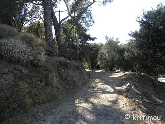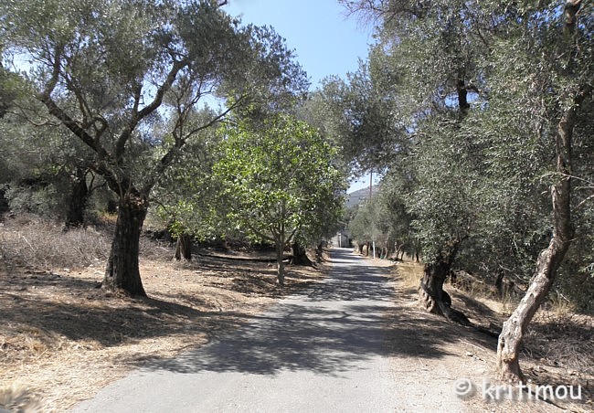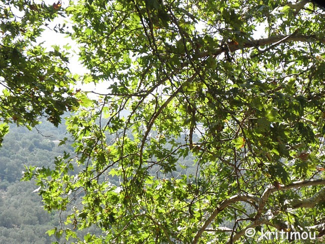 ![]() Olivenfelder sind stellenweise terrassenförmig angelegt, die Hänge von Feldwegen durchzogen. Entlang der Flussläufe, auch wenn sie schon ausgetrocknet sind, entdecken wir immer wieder üppige Vegetation. Wir gleiten unter Bäumen hindurch, die die Straße überschatten und vorbei an duftenden Sträuchern. ![]() Kleine Häuseransammlungen, winzige Klekse auf der Landkarte, wie Agii Theodorii, liegen auf unserem Weg, dann wiedergeht es vorbei an knall-lila Thymian-Büschen, zarten, uns bis dahin unbekannten Zierstrauchfrüchten (Baumwoll-Seidenpflanze) und reifen Feigenkakteen. An einem trockenen Flussbett bewundern wir eine riesige Platane, an einer anderen Stelle erkennen wir aber auch die Wunde eines abgebrannten Hügels. Still ist es hier oben, keine Autos, keine Menschen weit und breit. Wunderschön und wohltuend durch diese vom nachmittäglichen, warmen Licht beschienene Landschaft zu kurven.