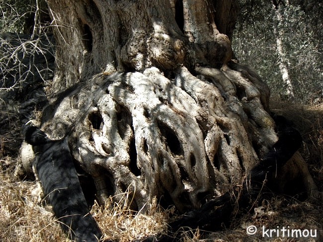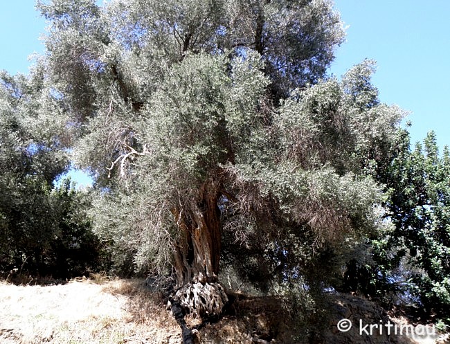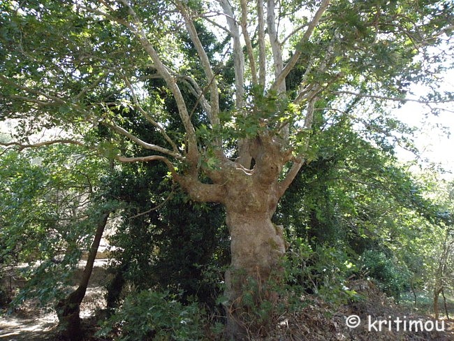 ![]() Schließlich erreichen wir Voutás, am Pelikaniótikos Pótamos gelegen und mit mehreren Kafenía ausgestattet. Eines haben wir uns ausgesucht, um eine Limo zu trinken. Zwei Männer sitzen davor, ein paar Kinder spielen vor dem Eingang. Alex hält, gefolgt von den interessierten Blicken der beiden Männer, zum Rückwärtseinparken längsseits eines dort schon abgestellten Pickups und wird ohne Vorwarnung von einem auf der Ladefläche stehenden Schaf durch das Seitenfenster fortissimo angeblöckt. BÄÄÄÄÄÄÄHHH!!!!. Erschrocken zuckt er zusammen, mit einer solchen Trompete, zehn Zentimeter neben seinem linken Ohr, hat er nicht gerechnet. Grölendes Gelächter ist die Folge, und so führen wir uns laut lachend in Voutás ein. Gemütlich ist es hier. Der junge Tavernenwirt wirft irgendwann den Grill an, sicherlich wird es bald verführerisch nach Fleisch duften. Zwei junge Mädchen sind in ihr Strandtennis vertieft, andere machen Selfies und führen kichernde Mädchengespräche. Ein kleiner, total verdreckter Hund, kommt aufgeregt wedelnd daher und will auch mitspielen. Um Punkt 17 Uhr kräht der Hahn nebenan. Man könne die Uhr nach ihm stellen, meinen die beiden Männer. Der ältere Besucher, mit dem der Wirt ein Schwätzchen gehalten hat, und der augenscheinlich mit dem lauten Schaf unterwegs ist, hat uns unser Getränk ausgegeben. Bald machen auch wir uns wieder auf die Socken, denn wir haben noch etwas vor. Glitzernde Schieferplatten begrenzen nun die Straße, über die sich die Nachmittagsschatten immer tiefer herabsenken. Sehr alt ist das Olivenland, durch das wir rollen. Baumriesen mit beträchtlichem Umfang und beeindruckenden Wurzeln säumen den Wegesrand.