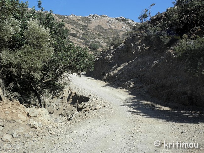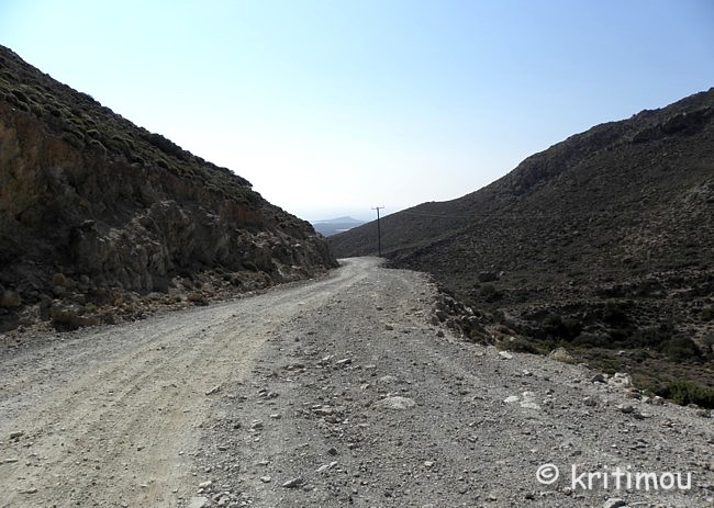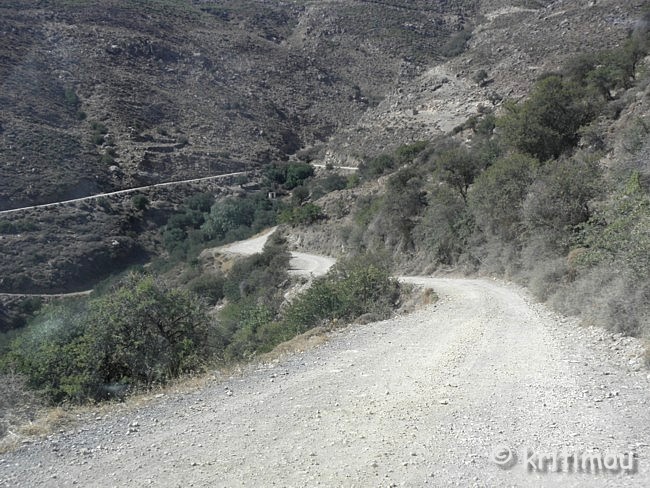 Über Sklavopoúla nach Elafoníssi So wie wir bei unserem Ausflug am Tag zuvor zurückgekehrt sind, fahren wir zunächst über Voutás nach Sklavopoúla in umgekehrter Richtung wieder in das Bergland hinauf. Duftflashes haben uns unterwegs längst schon wieder in ihren Bann gezogen. Hin und wieder halten wir an, stoßen kurz zurück bis zu der Stelle, wo es betörend roch. Zum Kräuterpflücken werden wir jedoch nicht kommen, denn wir haben ein Ziel vor Augen: Laut unserer recht alten Anavasi-Karte führt eine „malerische Straße“ hinab ins Badeparadies, nach Elafoníssi. Hinter der letzten scharfen Spitzkehre der Häuseransammlung Maniatianà (Sklavopoúla) geht der Asphalt in Schotter über. ![]() Ein Bewohner, der dort gerade steht, erklärt uns, nach Elafoníssi seien über diese Strecke etwa acht Kilometer nicht asphaltierten Weges zurückzulegen. Alex meint, er würde das schaffen, wo kämen wir denn hin. Diesen Entschluss sollte er später auf der knapp dreizehn Kilometer langen Holperstrecke mehrfach bereuen. Möglichst im Schritttempo überfährt oder umkurvt man unzählige Steine in allen Größen und Formen, die spitz aus dem Weg ragen, um den Unterboden des Mietwagens zu schützen. Würde man noch langsamer fahren, könnte man glatt den Rückwärtsgang einlegen. Ein Jeep meistert diese Strecke mit Bravour, aber nicht ein Kleinwagen.