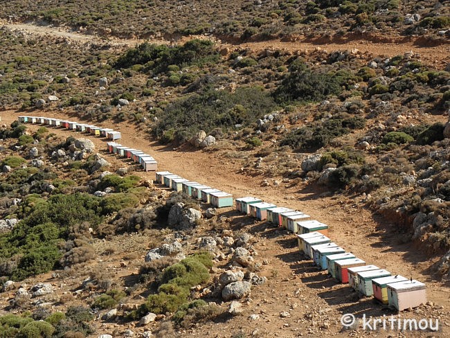 ![]() Während man bis Voutás und Sklavopoúla durch Olivenhaine und an üppigen Kräuterhügeln vorbeifährt, hat die Vegetation auf dieser Holperpiste plötzlich aufgehört. Natürlich reden wir uns ein, dass diese „Panoramastraße“ etwas Besonderes darstellt und wir die Gnade haben, diese jetzt befahren zu dürfen. Während ich versuche, aus der kahlen, baumlosen Landschaft, den komplett vertrockneten und zugestaubten, niedrigen Büschen und der Rumpelstrecke irgendetwas „Malerisches“ herauszulesen, hat Alex kurzerhand den Begriff „Kokolores-Panorama“ geprägt. ![]() Nur am Anfang haben uns zwei Autos überholt, danach sind wir keiner Menschenseele mehr begegnet. Bienenstöcke sehen wir unterwegs, ansonsten fühlen wir uns wie auf einem Exoplaneten.