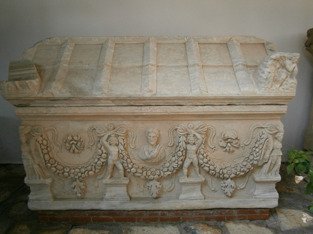 und die Marmor-Straße. ![]() Nach einer eingehenden Besichtigung verließen wir das Gelände durch eine schattige Pinienallee und begaben uns nach Selcuk zur Johannesbasilika, von der nur noch einige Ruinen vorhanden sind, zur ältesten Moschee Anatoliens mit einem schön bepflanzten Innenhof und später ins Museum, das nicht nur ein Modell des Artemistempels – von dem leider original nur noch eine Säule steht - ausgestellt hat, sondern auch einige schöne Sarkophage und kleine Schau-Geschäfte als eine Art Volkskundemuseum.