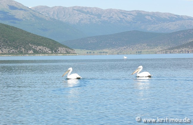 Man kann sich durchaus fragen, warum es einen nach so vielen Jahren – bei der landschaftlichen Vielfalt, die Griechenland in seiner Gänze zu bieten hat – ausgerechnet wieder in eine Gegend zieht, die so weit ab liegt, dass die Anfahrt schon mehrere Stunden dauert und lediglich in einem kleinen Dorf an einer EU-Außengrenze endet. Die Antwort ist ganz einfach: Die Naturerlebnisse, die Ruhe und die Stille, die wir an nur einem einzigen Tag, damals im heißen Juli 2013 (bei feuchtschwülen fast 40 Grad, die Luft voller Moskitos), an den beiden Prespaseen fanden, haben uns tiefe Erinnerungen beschert. Der Wunsch, die Gegend erneut zu besuchen, konnte für uns aufgrund der Entfernungen nur im Rahmen eines erweiterten Nordgriechenlandaufenthaltes in Erfüllung gehen. Vor allem war es mir wichtig, eben nicht in einem der lähmenden, moskitoreichen Sommermonate dorthin zu fahren, und so bot sich der Besuch in diesem Jahr perfekt an. Nach unserem Besuch Komotinís in Thrakien müsste man tatsächlich 500 Kilometer zurücklegen, um von Nordostgriechenland in den äußersten Nordwesten zu kommen. Was für ein Stress! Selbst von Vrasná aus, unserem zweiten Stopp, sind es immer noch 300 Kilometer, doch die wollten wir gerne in Kauf nehmen, um uns von der bewaldeten Landschaft mit ihren Wildtieren, den Bergen und Seen bezaubern zu lassen. Am meisten freute ich mich auf die Krauskopfpelikane, die an den Prespaseen im Laufe der letzten Jahrzehnte ihr größtes Brutgebiet weltweit gefunden hatten, nachdem entsprechende Maßnahmen zu ihrem Schutz greifen konnten. Doch das war ein langer Prozess. Als sehr hilfreich dabei erwiesen sich aber auch gerade diese abgeschiedene Lage und der Fischreichtum der Seen, die ihnen einen geeigneten Lebensraum für ihr Brutgeschäft boten. 2013 hatten wir bei unserer Festlandtour unter anderem auch das Feuchtgebiet des Ambrakischen Golfs passiert, das diesen Pelikanen in relativ kurzer Entfernung einen Platz zum Überwintern bietet, nachdem es in der Höhe von Prespa auf 850 Metern im Winter schneereich und so bitterkalt werden kann, dass die Seen zufrieren. Doch am Ende des Winters kehren alle wieder zusammen mit ihren Artgenossen, die in anderen Regionen vorübergehend ein warmes Plätzchen gefunden hatten, zurück. Gerne hätte ich die großen Vögel einmal in ihrem schönsten Federkleid gesehen, wenn der Kehlsack sich knallrot eingefärbt hat. Doch das wird wohl im Februar/März sein, für uns ein wenig zu früh. Im Mai hingegen müssten eine Vielzahl von Küken schon eine ordentliche Größe erreicht haben. Wir freuten uns daher schon auf eine erneute Bootsfahrt hinaus auf den großen Prespasee, um die Vögel aus der Nähe zu beobachten. Manche trauen sich sogar bis an den großen Holzsteg im Dorf Psarádes, um ein paar Fischabfälle von den Fischern abzustauben. Für unser leibliches Wohl sollte ebenfalls gesorgt sein. Schon Wochen vorher freute ich mich auf einen großen Karpfen, eine Forelle oder andere Fische, fangfrisch aus dem See. Sogar endemische Fischarten gibt es in den Seen und deren Zuläufen seit Urgedenken. Diese werden aber sicherlich nicht serviert. Ich hoffte erneut, die wohltuende Ruhe und Stille von damals auf dem See zu finden, Momente des Innenhaltens gepaart mit einem Glücksgefühl der vollkommenen Klarheit über das augenblickliche Hiersein. Vielleicht auch ein wenig Rückbesinnung auf das einfache Leben in der Natur, um zu schauen, wie es uns in der Abgeschiedenheit damit ergehen würde, auch wenn es nur ein paar Tage sein würden. Spaziergänge durch das Dorf und drum herum sowie zum Aussichtpunkt Kap Rotí an einem Ende des Fjords hatten wir uns vorgenommen, in dessen weitgehend windgeschützter Kurve sich die Einwohner von Psarádes einst niedergelassen hatten. Von dort oben hat man eine tolle Sicht auf den Großen Prespasee. Unterwegs könnte man aber auch auf Meeresebene hinabsteigen, um eines der alten Klöster oder verlassenen Einsiedeleien zu besichtigen. Auch unsere Überquerung des Kleinen Prespasees über einen Steg hinüber zur Insel Agios Achílios wollten wir wiederholen und schauen, was sich dort vielleicht verändert hat. Vielleicht könnte man auch weitere Ausflüge unternehmen, z.B. nach Flórina oder zum Bärenrefugium bei Nymféo, das bei unserem ersten Besuch leider geschlossen war. Auf die in Griechenland berühmten Prespabohnen hatten wir es besonders abgesehen: weiße, braune, Augenbohnen und Gigantes. Sie haben einen betörend-intensiven Geschmack, den wir sonst nirgendwo so wiedererlebt haben. Für diese Bohnen hatten wir extra Platz in den Koffern gelassen. Es gab also genug zu tun in den fünf Tagen, für die wir in einem Familienbetrieb in Psarádes eine einfache Unterkunft gebucht hatten. Anreise