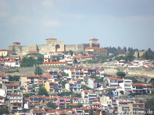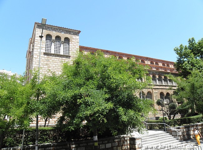 ![]() Uns steht überhaupt nicht der Sinn nach Besichtigungen. Vielmehr bleiben wir außerhalb der Stadtmauer, gleich in der Nähe der Busstation, und kehren in ein Lokal mit Aussichtsterrasse ein. Am Tisch hinter mir quatscht ein Fußballmanager einen anderen samt jungem Spieler in irgendeine rosige Zukunft mit tollem Stadion und einer irren Stadt hinein. Wir jedoch genießen einfach den unfassbaren Ausblick auf die Stadt. ![]() Der Sänger, der wie kein anderer das Lebensgefühl in Thessaloníki zum Ausdruck bringen konnte, war Dimítris Mitropános. In Thessaloníki, Samstagabend und April möchte er „seine Seele in ein Rembétiko stecken, um die verlorene Zeit auszutricksen“, wenn er sich daran erinnert, wie er als verrückter Achtzehnjähriger von der Burg aus auf die Stadt blickte, um mit ihrer Liebe ins Leben hinauszuziehen. „Es war einst mein Frühling, ich war einmal dein April.“ Ich kann nicht beurteilen, wie die jungen Einwohner der Stadt heute darauf blicken. Obwohl sich die Zeiten gewandelt haben, auch hier natürlich schon lange die Moderne Einzug gehalten hat und die Ausgehviertel abends voll mit feiernden Menschen besetzt sind, so bleibt ein Stück des alten Thessaloníki in seinen Liedern erhalten. Auch früher sind die jungen Leute mit frohem Schwung abends ausgegangen und in die einschlägigen Stadtteile gezogen. Páme Tsárka, rief man sich zu. Wie Glykería wollte man das Baglamás spielen hören, oder wie Strátios Dionisíou im Lied Der Salonikier neben Baglamás auch Bouzoúki hören und Tsiftetéli (Bauchtanz) sehen. Menschen, die in Thessaloníki aufgewachsen sind und aus irgendwelchen Gründen wegziehen mussten, blicken aus der Ferne stets mit Sehnsucht auf die Stadt ihres Herzens zurück. Die einen besingen das Wunderschöne Thessaloniki und denken dabei an die engen Gassen und die Nächte; die Erinnerungen anderer an den Stolz des Thermaischen Golfes sind zwar süß, aber aufgrund der Entfernung ebenfalls wehmütig. Neben der Sehnsucht nach der Heimat kommen wie bei Stélios Kazantzídis Erinnerungen an Mein Thessaloniki als „meine große, arme Mutter“ hinzu. Das Thema der Mama Saloníki findet sich in vielen der Lieder, in denen bekannte Fixpunkte wie die (alte) Egnatía (hier als Flaniermeile), der Galeriusbogen, der Weiße Turm oder die Burg erwähnt werden. Daneben wird die Stadt gerne auch als „Braut des Nordens“ bezeichnet. Für andere wiederum ist Thessaloníki eher eine „Hexe, anziehend wie ein Magnet“. Ein weiteres bekanntes Lied ist vielschichtiger. Es gibt Hinweise im Text, dass die Schwermut nicht nur aus der Sehnsucht nach Thessaloniki in der Ferne oder nach der eigenen Jugend in der Stadt herrührt, sondern noch eine weitere Komponente beinhaltet. Ich suche dich in Saloníki deutet in mehreren Bildern die für immer verlorene Hoffnung auf die Rückkehr nach Konstantinopel an. Die Zeile „Nachdem die Götter es auf dem Olymp beschlossen hatten, übergaben sie die Schlüssel an die Kälte und brachten sich um“ mag diese Unwiderruflichkeit ausdrücken, die mit dem Beschluss des „Bevölkerungsaustausches“ Anfang der 1920er Jahre und der daraus resultierenden Vertreibung einherging. Der im Lied verwendete Begriff „Polítiko“ weist ebenfalls darauf hin. Wegen der Betonung ist der Ausdruck nicht mit „politisch“ zu übersetzen, sondern mit Bezug auf „DIE Stadt“ und damit auf Konstantinopel zu verstehen (wie im Film „Zimt und Koriander“, der auf Griechisch „Polítiki Kusína“ heißt). Im Lied hängt der Protagonist, der wie die über 1,5 Millionen Flüchtlinge aus Kleinasien kam („der Fanári-Weg“), in einer Gasse in Saloníki fest und kämpft im Winter „mit leerem Köcher“. Er sucht sie (die geliebte Stadt Konstantinopel oder vielleicht doch eine Frau aus jener Stadt) in Saloníki im Morgengrauen „mit einer Geige und einem Mond“. Doch „es fehlen der Traum, du und der Geigenbogen“. Den Text zu diesem abgrundtief traurigen Lied über einen unwiederbringlichen Verlust schrieb der Lyriker und Texter Fílippos Grápsas, die Musik dazu stammt von Mários Tókas. All diese Lieder werden auch heute noch oft im Radio gespielt. Ebenso wie andere, die Thessaloníki in der einen oder anderen Art besingen, sind sie fest im Gedächtnis nicht nur der älteren Bevölkerung verankert und gehören zum Kulturgut der Stadt. Über diese berührenden Melodien lässt es sich beim grandiosen Ausblick von der Burg über die Häuser und das Meer trefflich sinnieren. ![]() Auf der Rückfahrt passieren wir weitere Sehenswürdigkeiten, wie die Agios-Dimítrios-Kirche, den Aristoteles-Platz, das Hafengebäude und einigen anderen Attraktionen.
