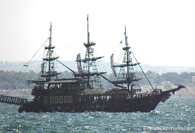 ![]() Heute ist Sonntag und das bedeutet eine ultravolle Strandpromenade. Ganz Thessaloníiki scheint bei dem schönen Wetter auf den Beinen zu sein. Beim Verlassen des Hotels schallt uns auf der Platía Aristotélous laute Musik entgegen. Eine Veranstaltung des Roten Kreuzes wird vorbereitet, wahrscheinlich soll später etwas vorgeführt werden. Zur Einstimmung wurde die Musikanlage voll aufgedreht. Ein Typ mit Helm demoliert gerade einen auf dem Platz abgestellten PKW brachial mit einer Axt. Wahrscheinlich soll ein Unfall simuliert werden. Das ist das Bild, das sich uns bietet. Wir hoffen sehr, dass der ohrenbetäubende Rummel am Abend vorbei sein wird. Schnell verlassen wir den Platz und biegen auf die Uferpromenade ein.