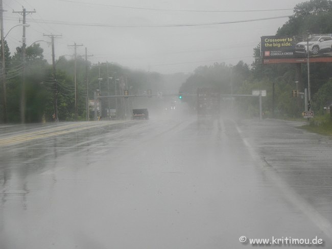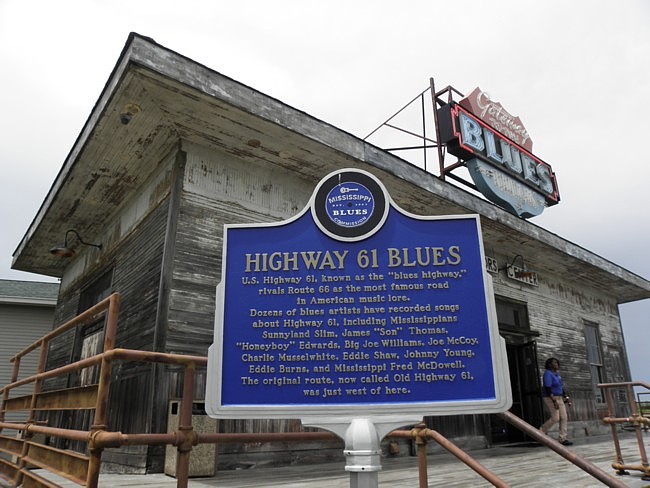 Sollen wir uns von der Warnung entmutigen lassen oder grenzt es an Dummheit, unter diesen Bedingungen nach Clarksdale zu fahren? Wir entscheiden uns dazu, wie geplant, unsere Reise fortzusetzen, weil wir die Gefahr als nicht akut erachten. Wir werden uns aber fortlaufend über die Lage informieren. Eigentlich wäre die Fahrt nach Clarksdale über den berühmten Highway 61, den Blues Highway, eine einfache Sache, wenn man den Weg aus Memphis heraus so leicht finden würde, wie ich es mir auf der Karte vorgestellt habe. Eine Stunde reine Fahrzeit ist eingeplant. Trotz Navi gestaltet sich die Suche nach diesem Highway (und genau der soll es auch sein) als sehr zeitaufwändig, da uns mehrere Baustellen, die der Satellit nicht auf dem Schirm hat, vor vollendete Tatsachen in Form von gesperrten Straßen stellen. Also nehmen wir noch eine Kurve, und eine weitere, dann mal anders herum, bis wir schließlich sogar auf einer der Brücken über den Mississippi landen und eingeklemmt zwischen dahineilenden LKWs mal eben nach Arkansas rüberfahren. Das ist definitiv total verkehrt, also kratzen wir am anderen Ende wieder die Kurve und brettern auf der Parallelbrücke zurück nach Memphis. Mittlerweile ist schon eine Stunde vergangen und es hat angefangen zu regnen. Oder besser gesagt: Es schüttet. ![]() Wir beschließen, an der nächsten Tankstelle anzuhalten und vorsichtshalber den Tank zu füllen – wer weiß, wie lange wir noch herumkurven werden. Wasser für die Scheibenwischanlage wäre für eine bessere Sicht auch nicht zu verachten. Getankt haben wir in den USA ja noch nicht. Ich weiß nur, dass man im Voraus bezahlen muss. Ein junger Mann mit Hoodie und Basecap ist neben dem Eingang des Tankstellengebäudes in sein Handy vertieft. Zunächst ein erstaunter Blick, als ich ihn um eine Auskunft bitte, und ihm erzähle, dass wir Touristen sind und das Tanken in Deutschland anders funktioniert. Schließlich bestätigt er mir sehr freundlich die Reihenfolge, wie ich sie auch im Internet gelesen habe. Zunächst habe ich geschätzt, wie viele Gallonen wir voraussichtlich brauchen werden. Mit diesem Wunsch gehe ich zum Schalter und bezahle dafür. Erst nach der Freigabe dieser Menge für unsere Zapfsäule fließt der Sprit. [Man kann es sich auch einfacher machen, nämlich einfach den Geldbetrag sagen, für den man tanken will.] Ich ordere also 5 Gallonen (etwa 20 Liter) und zahle märchenhafte 16 USD. Wasser für die Wischanlage gibt es hier eigenartigerweise nicht. Für Alex dennoch Daumen hoch, der Sprit ist freigegeben. Zwischenzeitlich suche ich erneut die Hilfe des netten jungen Mannes am Eingang und frage nach dem Weg zum Highway 61 in südlicher Richtung. Tatsächlich und ganz unerwartet sind wir nur noch zwei Abzweigungen davon entfernt. Also rein in die Karre und ab geht’s auf den Blues Highway. Erleichterung stellt sich ein, als wir ihn endlich leibhaftig ausgeschildert sehen. Dieser berühmte Highway soll uns während der nächsten Tage tief ins Delta bringen, in den Deep South, zu den Wurzeln des Blues. Besungen von vielen Musikern, darunter Mississippi Fred McDowell und Bob Dylan, haben sich entlang des jetzt westlich verlaufenden Old Highway 61, wie in den Songs bekundet, viele Geschichten zugetragen. Für Fred war es im Lied die längste Straße, die er kennt. Der Sturzregen hat noch nicht aufgehört, unablässig prasselt er aufs Dach und verwischt die Sicht, während uns Autos überholen und wir auf den Verkehr aufpassen müssen. Unter diesen Umständen fällt es mir anfangs schwer, einen sofortigen Bezug zu diesen Geschichten zu bekommen. Kerzengerade zieht sich die zweispurige Straße nach Süden, maximal 65 mph (knapp über 100 km/h) sind erlaubt. Wir konstatieren, dass wir mit unserem superbequemen, technisch voll (sogar mit Einparkkamera) ausgestatteten Kleinwagen, der obendrein noch spritsparend ist, sehr gut bedient sind. Mittlerweile haben wir die unsichtbare Grenze nach Mississippi überquert. Einen landschaftlichen Unterschied zu dem Süden von Tennessee können wir hier nicht ausmachen: Es ist flach, grün und wasserreich, ein perfekter Boden für den Baumwollanbau. Noch im 19. Jahrhundert war dieses Gebiet besiedelt von den indigenen Stämmen der Chickasaw und Choctaw. Durch den wachsenden Bedarf an Land durch die unablässigen Einwandererströme aus Europa beschloss die US-Regierung unter Präsident Jackson (mit der knappen Mehrheit der Staaten des Südens unter Ablehnung der betroffenen indigenen Stämme) 1830 einen „Umsiedlungsplan“, den Indian Removal Act. Die Vertreibung dieser beiden Stämme auf dem Pfad der Tränen in die kargen Gebiete Oklahomas fand 1830 bzw. 1832 statt. Auch für die Cherokee, Muskogee aus den Gebieten weiter östlich sowie die Seminolen aus dem heutigen Florida war die Abtretung ihres Landes vorgesehen. Ich bin gespannt, ob wir auf unserer Reise durch das Delta noch auf Spuren des damaligen indigenen Lebens stoßen werden. Nur 25 Kilometer entfernt, in östlicher Richtung, befindet sich nun die beschädigte Staumauer des Arkabutla Lake. Mit bangem Blick verfolgen wir die Wassermassen, die sich weiterhin von oben auf uns herniedergießen und hoffen, dass diese an der Mauer nicht noch zusätzliche Schäden anrichten. Auf der Suche nach einem Hinweisschild zum Gateway to The Blues Museum, unserem ersten Stopp für heute, erhasche ich aus dem Augenwinkel lediglich ein Schild zu einem Visitors Center, das ich mit dem Tunica Resort mit zahlreichen Casinos verbinde. Von hier stammt im Übrigen der Blues Harp Spieler James Cotton. Immer weiter fahren wir durch den Platschregen. Irgendwo hier müsste das Gateway to the Blues Museum direkt am Highway doch liegen. Mittlerweile haben wir auch schon den langgezogenen Ort Tunica durchquert, als es mir dämmert, dass wir das Tor zum Blues verpasst haben. Ich hätte das aber sehr gerne besucht, so als Eingangstor auf unserem Roadtrip hinein ins Mississippi Delta, zu den Wurzeln des Blues, mit Haltepunkte