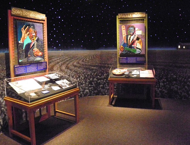 ![]() Der Eintritt für dieses kleine Museum kostet 10 USD pro Person. Stilecht erinnert es äußerlich an einen Juke Joint, doch im Innern empfangen uns über 700 sehenswerte Ausstellungsstücke. Was ist der Blues? Diese Frage bekommen wir zu Beginn unseres Rundgangs auf einer Tafel gestellt. Es gibt Annäherungen an den Begriff und die Bedeutung, unter anderem, dass sich spirituelle Musik, Feldgesang, Gefängnis- und Arbeitslieder der Afroamerikaner des frühen 20. Jahrhunderts auf Not und Unterdrückung fokussierten. Diese Musikformen verschmolzen miteinander zum Blues, der die harten Zeiten und Lebensbedingungen als Hauptthemen in den Vordergrund stellte. Auch der Willie Nelson hat an mehreren Stellen in seiner Biografie Bezug zum Blues genommen.