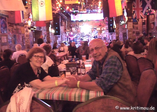 ![]() von John Lee Hooker signierte Gitarre ![]() Wir nehmen an einem der Tische Platz, die zur noch schwach beleuchteten Bühne ausgerichtet sind. Jede Woche von Donnerstag bis Sonntag gibt es Livemusik, bekommen Talente oder auch schon bekannte Bluesmusiker ihre Möglichkeit für einen Auftritt. Heute Abend wird die Mitch Grainger Blues Band, wohnhaft in Nashville, den Blues für uns spielen (hier bei einem Auftritt in LA). Doch noch ist es nicht so weit. Langsam meldet sich bei uns der Hunger, und für recht preiswertes Geld bekommen wir eine große Portion gebackenen Catfish mit Pommes und Ketchup, zünftig und passend, außerdem eine gute Grundlage für das ein oder andere Bier, das wir hier noch zu trinken gedenken. Alex, mittlerweile im Außenbereich neben einem Aschenbecher aufgeschlagen, hat schon Bekanntschaft mit einer norwegischen Blues-Truppe aus Notodden gemacht, die sich dort gemütlich auf einer Bank eingerichtet hat. Auch sie folgen dem Blues-Trail, treten manchmal auf, besichtigen Museen und andere heilige Tempel des Blues. Alex erzählen sie, dass sie uns schon in Memphis, auf der Beale-Street, gesehen haben. Im Laufe unseres weiteren Trips sollten sich unsere Wege noch ein weiteres Mal kreuzen. Diese Herrentruppe ist unglaublich nett, als ob man sich schon ewig kennen würde. Die Liebe zum Blues verbindet halt. Sie weisen uns auch auf das jährlich stattfindende Notodden Blues Festival hin, bei dem sie auch mit im Boot sind, als Mitorganisatoren, wenn ich es richtig verstanden habe. Dieses Jahr (2023) wird das Musikevent Anfang August mit einem Line-Up stattfinden, das sich sehen lassen kann. Später erfahre ich, dass Notodden und Clarksdale seit 1996 Partnerstädte sind, die insbesondere durch den Blues verbunden sind. Auch B.B. King, Christone Ingram und andere Musiker aus dem Delta haben in Notodden schon gespielt, umgekehrt auch norwegische Bluesmusiker in Clarksdale. Langsam bricht die Dämmerung herein, und das Lokal füllt sich innerhalb kurzer Zeit bis auf den letzten Platz für das bevorstehende Konzert. 12 USD kostet der Eintritt. ![]() Los geht es mit ein paar älteren Delta-Blues-Liedern, darunter auch Boom Boom von John Lee Hooker und ein Song von Muddy Waters. So gelingt es dem Sänger schnell, das Publikum einzufangen. Irgendwann singen wir alle unter seiner Leitung sogar einen Gospel! Im Focus stehen insbesondere eigene Songs von Mitch Granger, wie zum Beispiel Hollywood. ![]() Während des mehrstündigen Musikevents finden immer wieder Pausen statt, in denen die Gäste an den Tischen immer mal wieder wechseln. Dem Künstler macht es nichts aus, auch nicht, dass sich eine Truppe am Tresen lautstark unterhält. Egal, das gehört offenbar dazu. Seiner und unseren guten Laune tut das keinen Abbruch, wir genießen das Konzert, den Ort und alles um uns herum in vollen Zügen. Mittlerweile ist es schon spät geworden, als eine weitere Pause anbricht. Draußen, gegenüber dem Club, haben sich ein Paar Jugendliche um ein laufendes Auto herum versammelt und veranstalten zu ihrer Musik ihre eigene Freitag-Abend-Party. Irgendwie sind wir recht müde geworden und denken daran, dass wir morgen ja weiterfahren und dann ebenfalls wieder Programm haben. Zum Abschluss tauschen wir noch ein paar Scherze und weitere Worte mit den netten Norwegern, die Verabschiedung erfolgt per Handschlag. Dann trollen wir uns die paar Meter über die stille Straße hoch zum Hostel, in unser Zimmer, wo uns eine recht kühle Nacht erwartet. Zusätzlich zu den etwas niedrigen Nachttemperaturen bläst nämlich noch eine Air Condition automatisiert in zeitlichen Abständen ziemlich kalte Luft auf die dünne Decke. Hoffen wir, dass es am Tag wieder etwas wärmer wird! |