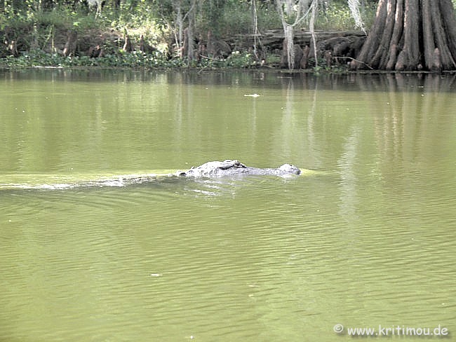 ![]() Es ist nicht leicht, die friedlich dahingleitenden urzeitlichen Echsen von abgestorbenen Baumstämmen zu unterscheiden. Schnell verschwinden die Gators gleich wieder unter der Wasseroberfläche. Nur gekräuseltes Wasser deutet darauf hin, dass hier gerade einer durchgeschwommen ist, für meine Fotografier-Künste wieder viel zu schnell abgetaucht.